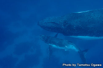 まだ泳ぎもおぼつかない赤ちゃんクジラが、お母さんの泳ぎを真似て尾ビレをしならせて一生懸命泳ぐ姿は、目の中に入れても痛くないほどかわいらしい。
