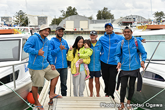 《ホエールスイム・フィッシュ&ダイブツアーズ》のスタッフ陣。中央がニュージーランド人のオーナー