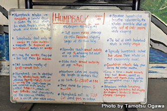 基本的にはクジラに触らない、尾ビレの後ろや上、下には入り込まないなどといったルールやマナーが説明される。ブリーフィングにはジェスチャーも入るから安心だ。