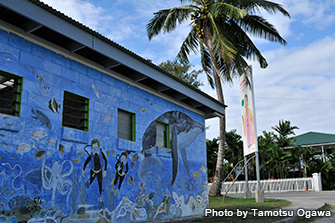 店内も海をモチーフにしたかわいらしいペイントで、ハッピーな気分に。 エウア島に、《Eua Oceanview Accommodation》というロッジ風の宿泊施設とダイビングサービスもある。その名のとおり、オーシャンビューで、ロッジのテラスからザトウクジラが見えることも。
