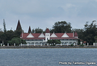 王宮(The Royal Palace)を海から撮った写真なのだが、赤白に統一された三角屋根の建物がかわいい。王様は公式行事の際だけこの王宮に宿泊され、普段はほかにお住まいとのこと