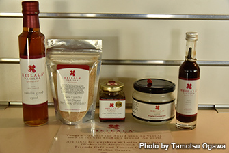 ビジターセンターで展示されていたのは「ヘイララ・バニラ」。ババウ諸島のある村を支援するための援助プロジェクトとして誕生したもの。ヘイララはトンガの国花で、ガルシニア科の植物。トンガやソロモンに分布する。この製品はバニラを使ったもので、バニラポッド、バニラエクストラクト、バニラシロップ、バニラペースト、バニラシュガーなどがある