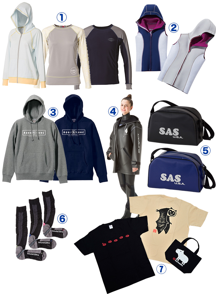 《SunFan》よりボートコートを1名さまにプレゼント! ダイビング後や、船での移動時間などの寒さ対策にはもってこいのアウターウエア。冬だけでなく、夏場でもマストアイテムとなること間違いなし。