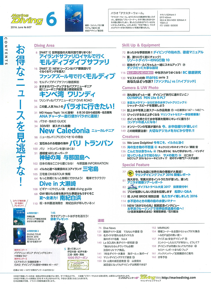 読んでタメになる特集が盛りだくさん! マリンダイビングフェア2016のレポートも掲載!