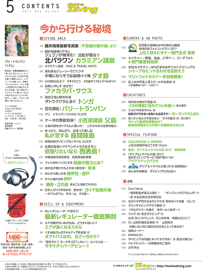 次号は沖縄&離島のダイビング情報満載の別冊付録のほか、