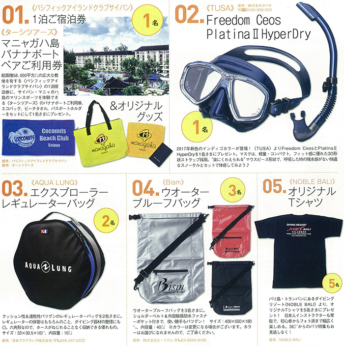ご応募はMD挟み込みハガキ、もしくはメール(md@marinediving.co.jp)で「WEB見ました!」