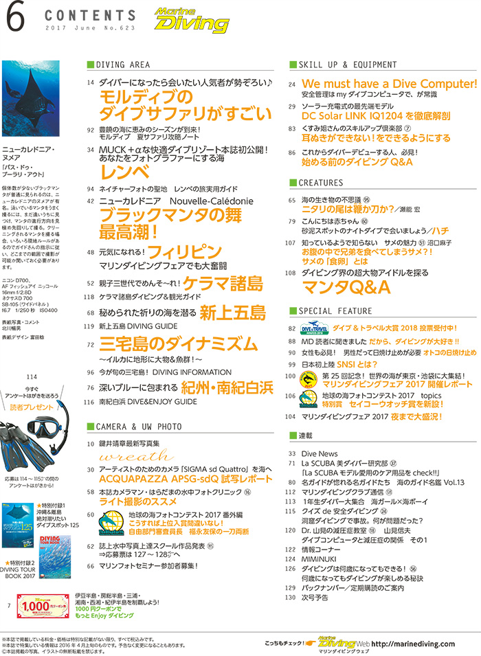 ほかにも、これからのシーズン注目のダイブエリアの情報がズラリ! さらにマンタの生態を探る特集や、