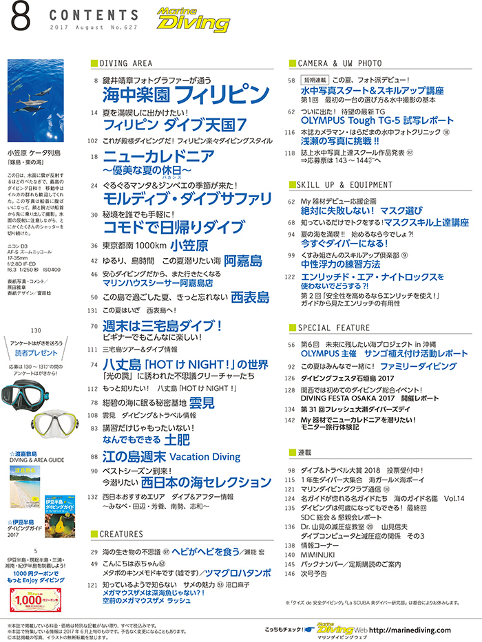 ・・・ということで、2大付録のうちの1つ「伊豆半島ダイビングガイド2017」で伊豆半島をとことん潜っていただきたい。