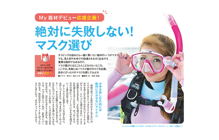 ほかにも空前のメガマウスザメ・ラッシュのレポートや、ダイバーになるためのハウツー、中性浮力の練習方法、エンリッチド・エア・ナイトロックスの講習内容、ファミリーダイビングのお得情報など企画盛りだくさん! これは買わなきゃ♪