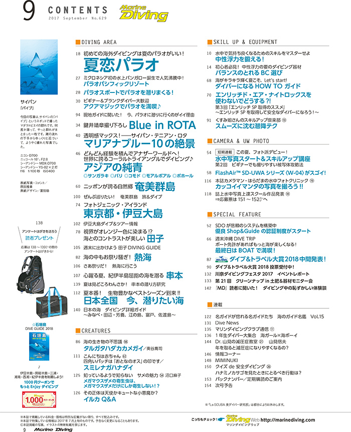 9月号に引き続き、次号もダイビングを始めたい方やぴっかぴかのダイバー1年生に贈る特集がいっぱい。