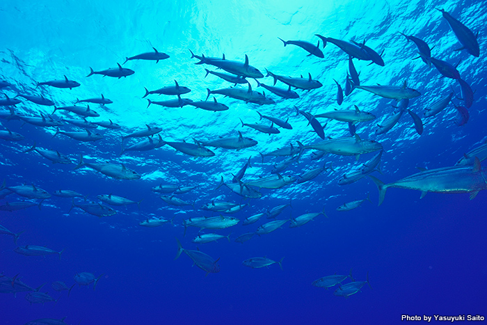 流れをものともせずイソマグロの群れが出現! Pictured by Junichi Moriwaki