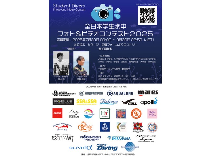- 「全日本学生水中フォト&ビデオコンテスト」締切は9/30(火)!