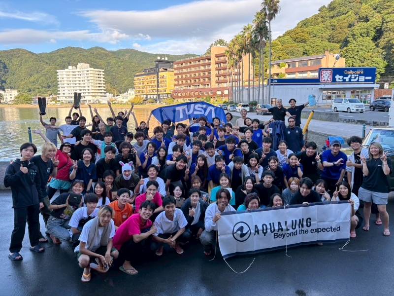 10月5日(日)9:30~、西伊豆・土肥の《土肥ダイビングサービス》で新宿・《サンドウェーブ》主催の「第14回 学生器材モニター会2025」が開催されました。当日は約12大学の学生さんたち70名が一堂に土肥に集合。