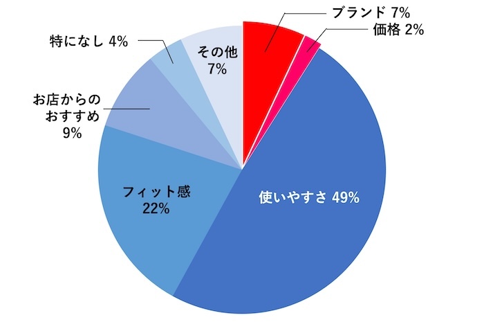 今回の調査結果で49%と最も多かったのは「使いやすさ」、次に22%が「フィット感」で、「価格」はわずか2%。価格にこだわらず、使用感を重視して慎重にフィン選びをしていることがわかりました。