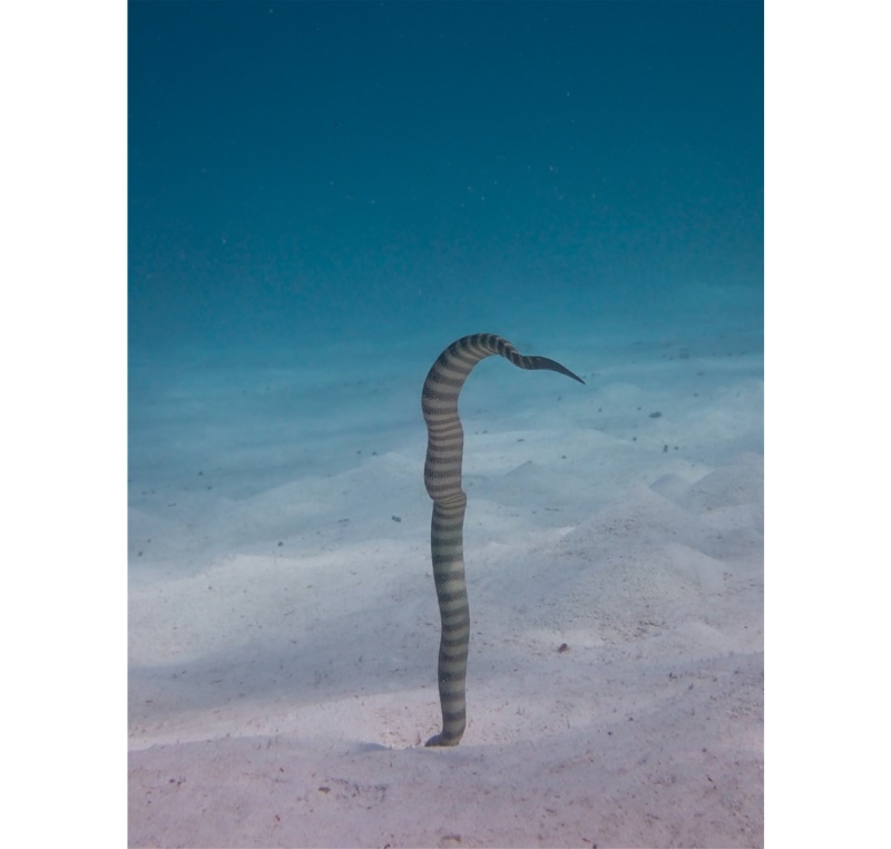 茂野さん講評(抜粋):ビギナー部門は水中写真に縛られない自由な発想の作品が多く素敵だなと感じていたのですが、その中でもこのウミヘビが逆立ちをしているシーンもその1つでした。ちょっと波を打ちながら立ち上がるウミヘビのなんとも言えない空気感に、背景の白砂と海のグラデーションがすごく素敵にマッチしていて、色味の調整も素晴らしかったです。