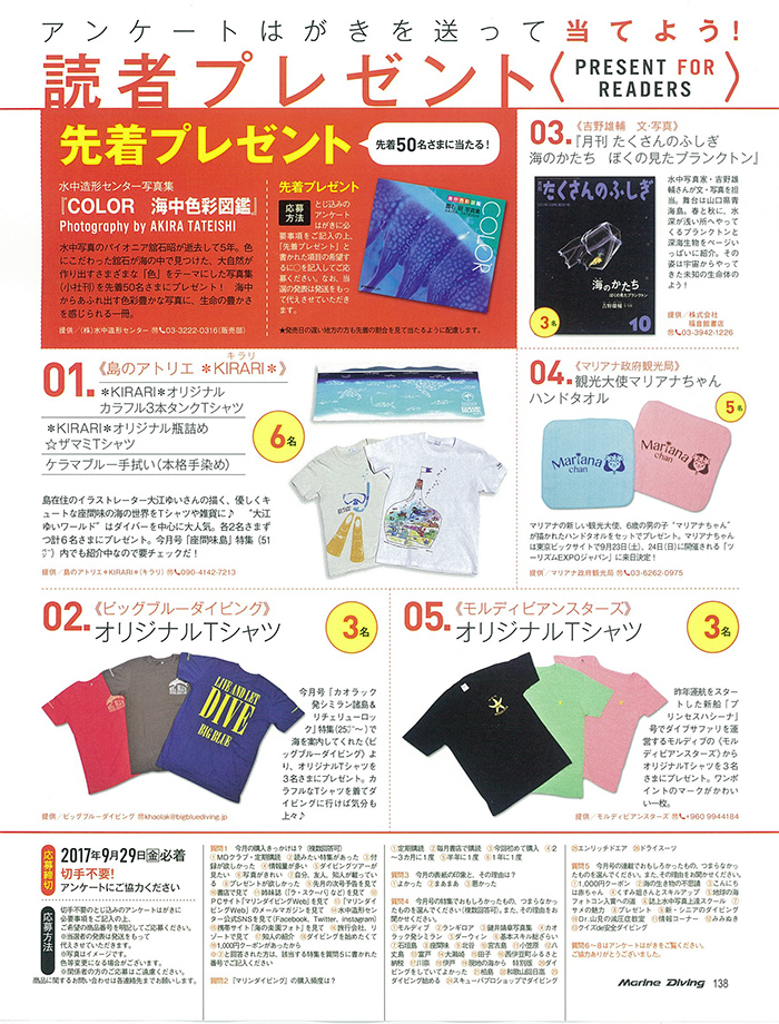 ご応募はMD挟み込みハガキ、もしくはメール(md@marinediving.co.jp)で「WEB見ました!」