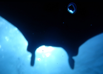これはまた凝っていますね。狙って撮ったというからびっくりです。最初に見たときは「どうして泡にピントが?」と疑問でしたが、中にマンタが写り込んでいることに気づいて驚きました。泡もマンタも動いている状況で、泡にはマンタを入れマンタの頭のところには太陽のハイライトをもってきて・・・・なんて、タンク1本使っても難しそうです。こんな撮り方もあるのか、と気づかせてくれた作品です。