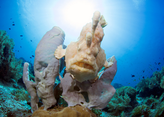 「私にとってpsychedelic frogfhsh(アンボンカエルアンコウ)は10年来の“一番見たい生き物”でした。とはいえ、ごく限られた海域で稀に見られるだけの超希少種。そこで昨秋、『出た!』との情報を得て、急遽セブ滞在を切り上げインドネシアのアンボンに飛び、無事逢うことができました。悲願の成就です。この写真は、ほとんどのダイバーがまだ見たことがない魚なので、一番強烈なインパクトを与えられそうな絵として撮りました」